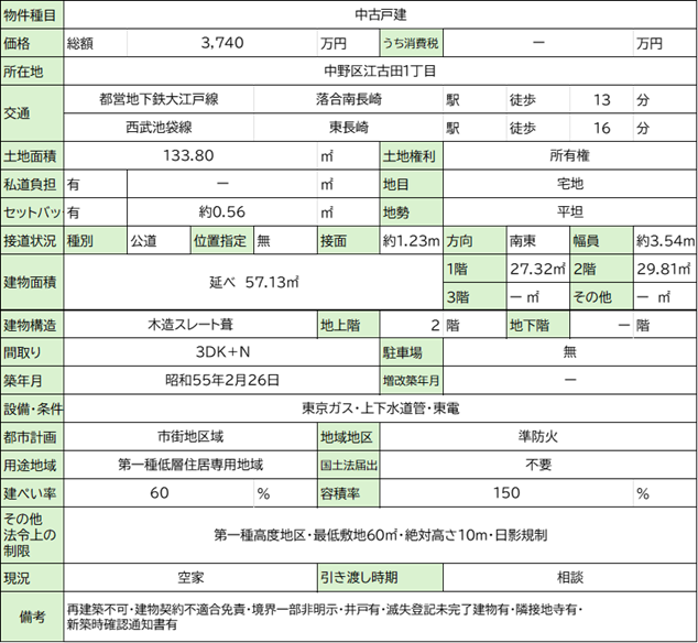 物件No.11/中野区江古田中古戸建て