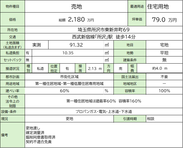 物件No.14/埼玉県所沢市 土地